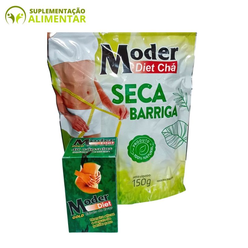 Moder Diet Chá – Seca Barriga – 100% Natural (150 grs) + Moder Diet Gold – Extrato de Ervas (40 cápsulas)